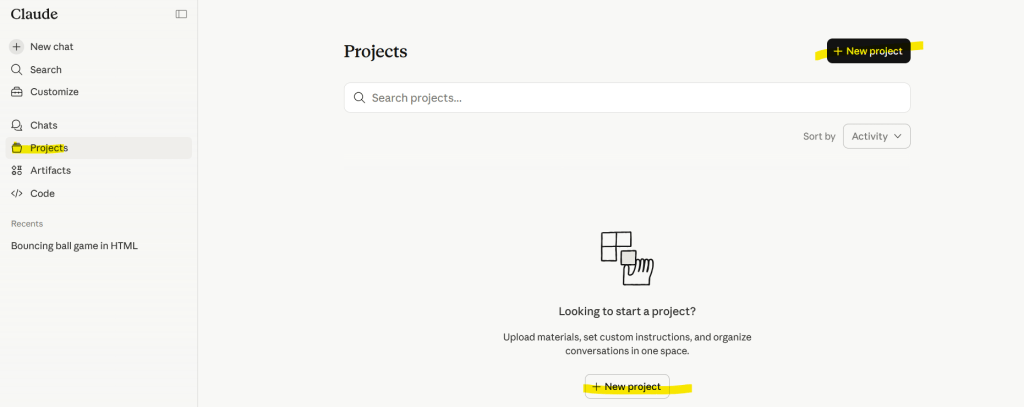 Click on “Projects” in the left sidebar, then “New Project”